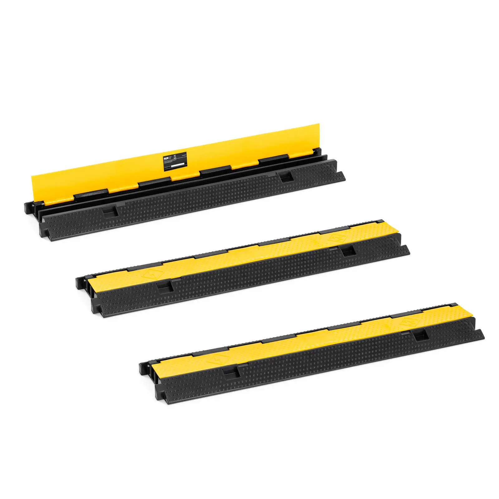 La combinazione di colori nero e giallo aumenta la visibilità del ponte per cavi e i conducenti hanno il tempo necessario per frenare. I ponti si aprono dall'alto e ciò permette di inserire i cavi in modo rapido e semplice e di estrarli con altrettanta facilità. Grazie ai due canali, più cavi e tubi di dimensioni diverse si inseriscono contemporaneamente nei tappetini protettivi. Ai lati dei ponti sono presenti delle rampe luminose che consentono di passare sui cavi con cautela, sia in auto che con un carrello elevatore. Le protezioni sono realizzate in gomma robusta e sono resistenti agli agenti atmosferici. Il profilo della parte superiore rende i ponti portacavi antiscivolo e antisdrucciolo per la strada e i pavimenti.